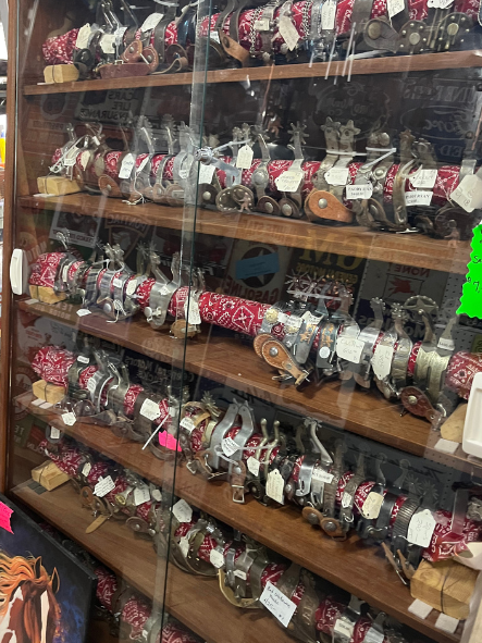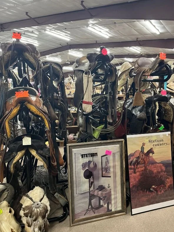 Western collectibles have always been at the heart of the Antique Corral and continue to be a major focus of our store. Our inventory features everything from a wall of cowboy boots and hats to racks of saddles and tack. We also carry a wide variety of silver conchos, adding unique, western-inspired accents to our extensive selection. Whether you're a seasoned collector or just starting your journey, our western collectibles are sure to impress.