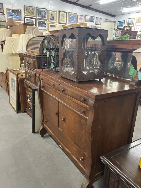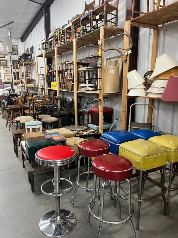 We offer a wide variety of furniture, ranging from simple card tables and folding chairs to more intricate pieces like curio cabinets, hall trees and bars. Our collection includes an extensive selection of tables, chairs, stools, lamps, end tables, dressers, antique sewing machine cabinets, bookshelves, and much more. Whether you're looking for functional pieces or unique, statement-making furniture, our diverse inventory has something to suit every style and need.