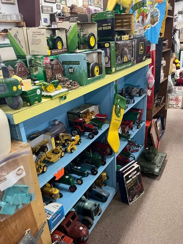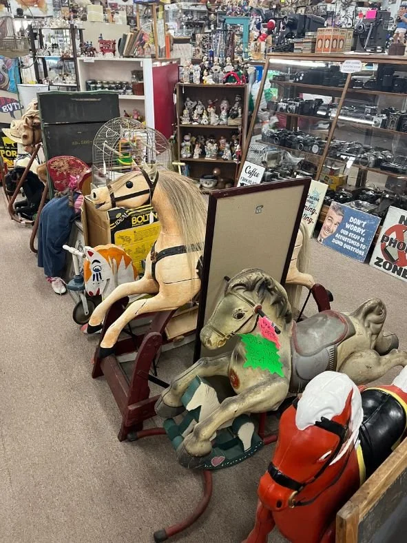 We offer a diverse selection of antiques and collectibles, each with its own story to tell. Everything from vintage crocks and oil lamps to classic toys, telephones, and military memorabilia. We also feature rare books, records, musical instruments, textiles like quilts and furs, as well as decorative items such as picture frames, luggage, clocks, and artwork. Additionally, you'll find treasures like typewriters and decanters. Whatever you're looking for, our offerings provide a unique opportunity to own a piece of history.